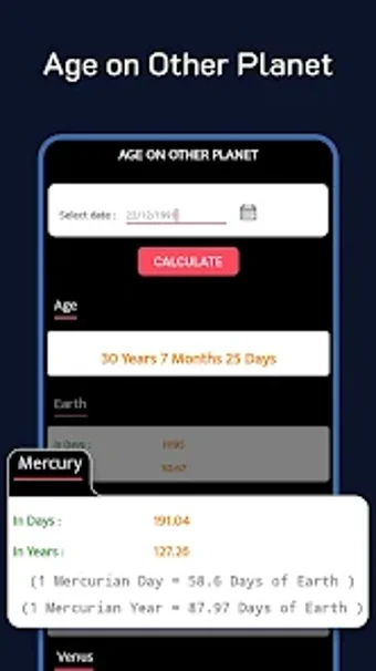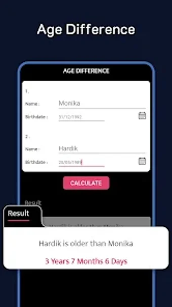 오늘날의 세상에서 사람들은 자신이 늙어가고 있다는 사실을 점점 더 자각하고 있습니다. 곧 노인이 된다는 사실을 생각하면 조금 슬퍼지는 것은 당연하지만, 나이가 든다는 데서 찾을 수 있는 많은 기쁨이 있는 것도 사실입니다. Age Calculator 앱의 도움을 받아 자신의 나이와 앞으로 남은 시간을 확인할 수 있습니다. 앱은 생년월일을 기준으로 나이를 계산합니다. 또한 나이를 찾고자 하는 월과 일을 선택할 수 있습니다.